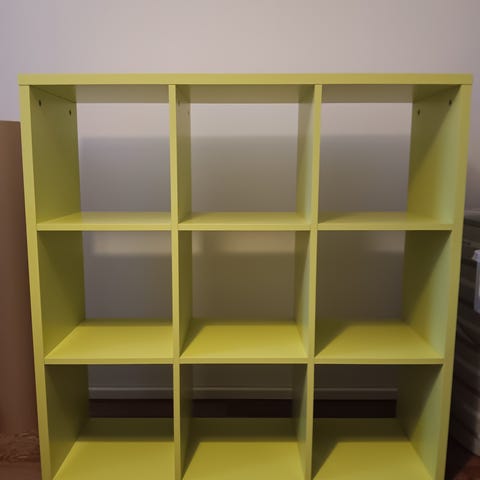 Yhden hyllyn kulma vääntynyt, voi laittaa taakse. Ruuvit löytyy.