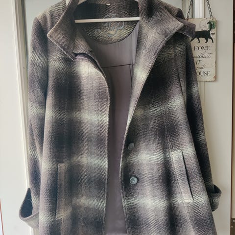 Jackpot pitkä villakangastakki. Sopii kevät ja syyskeleihin. Koko 2 vastaa noin kokoa 36/38.