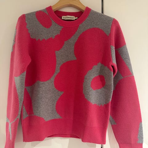 Marimekko pinkki-harmaa Silfa Unikko neule, koko S. Uusi ja käyttämätön lapuilla. 80% villa, 20% polyamidi.