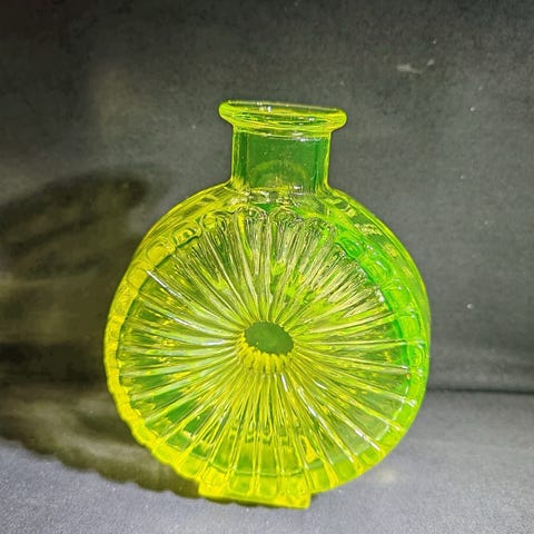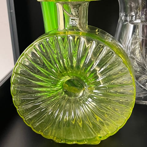 Keltainen aurinkopullo, korkeus 12 cm, suunnittelija Helena Tynell