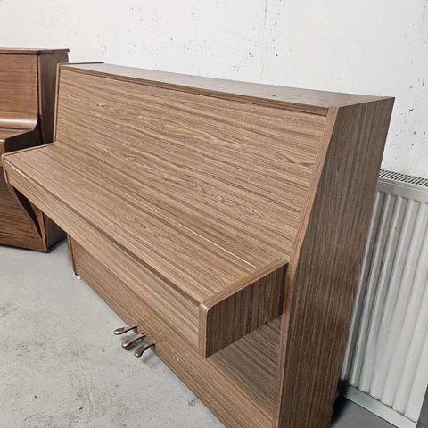 Pystypiano valkoisella viimeistelyllä. Sopii musiikin harrastamiseen. Sisältää pianon penkin. Ei kunnolla vireessä, eikä tietoa kuinka vireys pysyy. On kuitenkin toimiva ja soitettu.