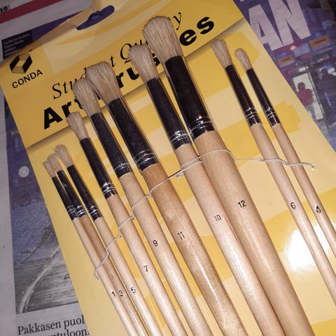 Winsor & Newton Cotman akvarellisarja + muut pensselit. Mukaan myös Lineon uudet synteettisiveltimet, sekä EVAn lattasivellin. Mukaan sivellinlaatikko. Soveltuvat erilaisiin maalaustekniikoihin ja taiteelliseen käyttöön.