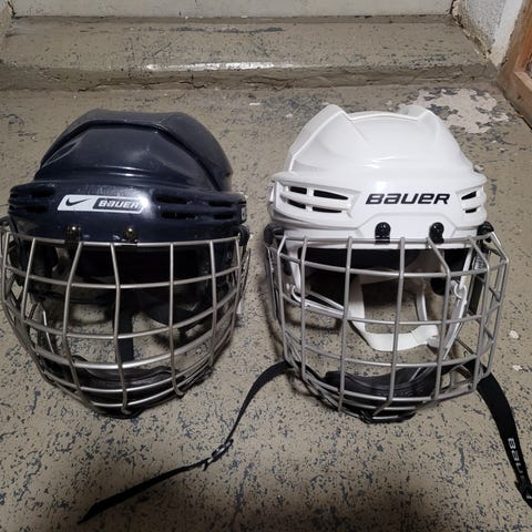 Ristikkokypärä, valkoinen. M koko. On ollut käytössä 9-12v pojalla.