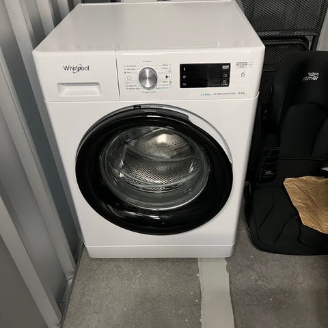 Whirlpool edestä täytettävä pesukone, valkoinen. Kuivaava.