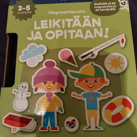 Siistikuntoinen Ikean magneettinen liitutaulu ja muutamia liituja odottaa uusia piirtäjiä. Koko 48 x 71 cm.