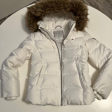 Myydään muutaman kerran käytössä ollut laadukas tyttöjen untuvatakki. Koko 122-128cm, hyvä kunto.