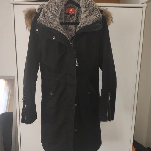 Luhta tummanvihreä pitkä ja lämmin talvitakki koossa 36.
