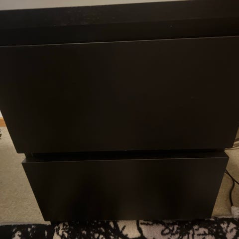 Annetaan Jysk yöpöytä. Pöydän päälle tippunut vettä, jonka takia väri muuttunut. Ei muuten mitään vikaa.