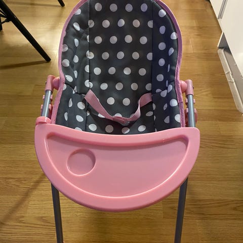 Myydään muovinen nuken syöttötuoli. Toimii ja saa kahteen eri asentoon.