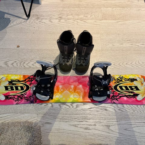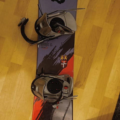 Myydään vähän käytetty lumilauta. Pituus n. 146cm, jonkin verran kulutuksen jälkiä löytyy (näkyy kuvissa). Siteet toimii moitettoomasti. Hyvä lauta aloittajalle!