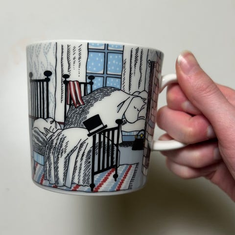Hiihtäen kera herra Virkkunen -Muumimuki