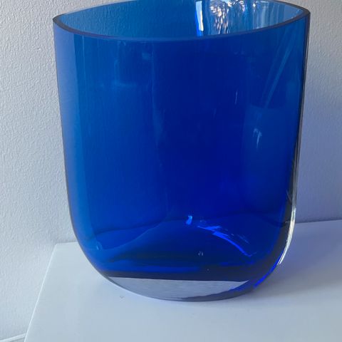Myydään Muurlan vaaleanpunainen, ehkä lilaan taittuva maljakko.