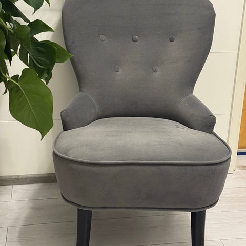 Vähällä käytöllä ollut tummansininen Remsta nojatuoli samettia.