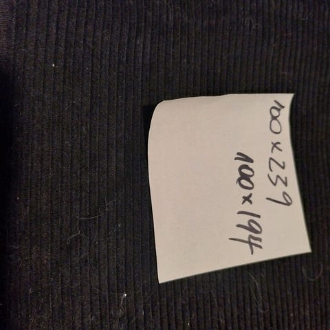 Uusi vakosamettin kankaanpalaa. Ostettu vuosia sitten, mutta en ole innostunut siitä mitään tekemään. Ei ole pesty. Kuva vaalensi väriä, mutta ihan musta on.