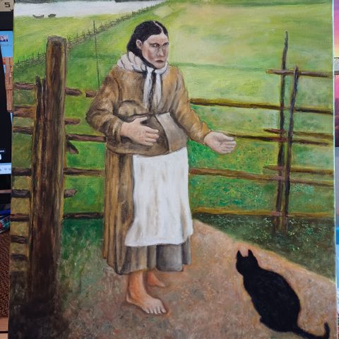 Varikset oksalla -taulu. 60 cm leveä ja 60cm korkea.