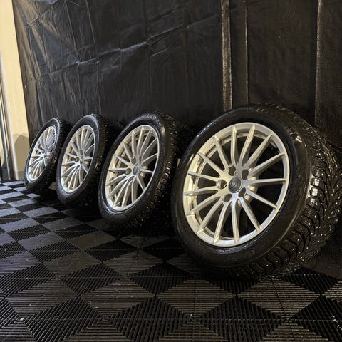 Alkuperäiset ja hyväkuntoiset Audin 17" vanteet. Kitkarenkaat Nokian Hakkapeliitta R3 paistettu 4619. Renkaissa n. 4,5 mm urasyvyyttä jäljellä. Vanteet ja renkaat olleet vm. 2020 Audi A4 alla. Pelkkä nouto.
