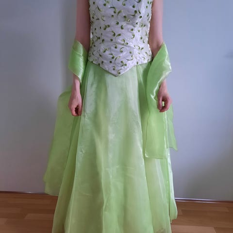 Todella siisti juhlapuku, vanhojentanssipuku, kaason puku tms. Rinnan ymp.84cm, vyötärön ymp.72cm, olka-helma 140cm. Vastaa noin kokoa M tai 36-38, mutta kannattaa verrata omiin mittoihin. Selässä vetoketju. Voi ottaa suoraan käyttöön, ei tarvitse pestä. Kulkeutuu omien menojen mukana Jklään. Voin lähettää. Hinta 50e.