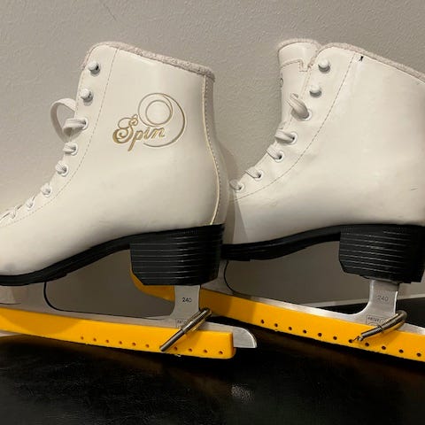 Hyvässä kunnossa olevat luistimet. Terissä ei ruostetta, nauhat ehjät ja kaikin puolin siistit.