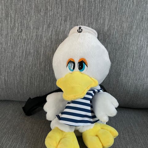 Kuvan mukainen pehmolelu reppu. Hyvässä kunnossa.