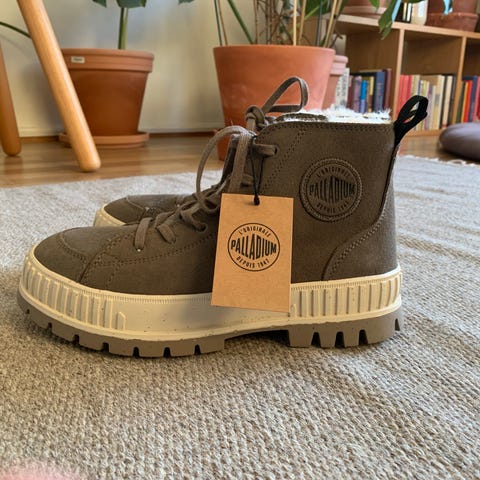Palladium Pallashock hiver talvisaappaat koko 40. Pieni mitoitus, joten sopivat 39 jalkaan. Kuin uudet, kerran pidetyt ja itselle väärän kokoisiksi todetut. Pintaan suihkutettu nahan suojasuihke. Materiaali mokkanahkaa ja sisällä lämmin polyesteri vuori.