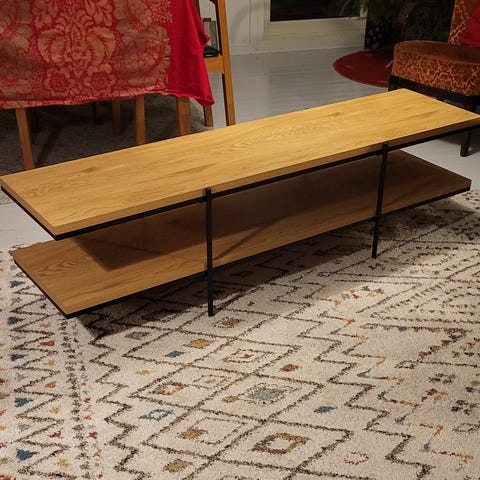 Muutaman vuoden käytetty uudenveroinen tv taso, joka leveyden puolesta käy 75 tuumaisen tvn alle. Kuvassa 58 tuumainen