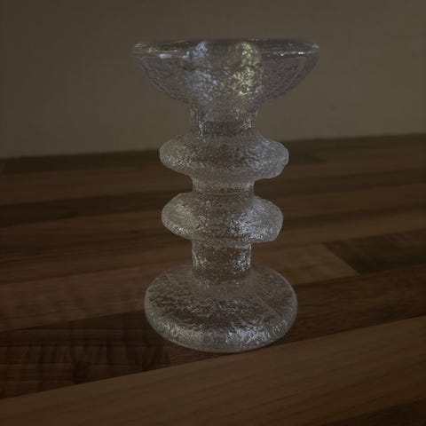 Myydään kaksi Iittalan festivo kynttilänjalkaa. Ovat nelisolmuisia. Kolmas kaupanpäälle joka haljennut ja liimattu ei näy kuin lähemmin tarkastellessa. Toisessa on signeeraus pohjassa. Nämä ovat vanhaa tuotantoa.