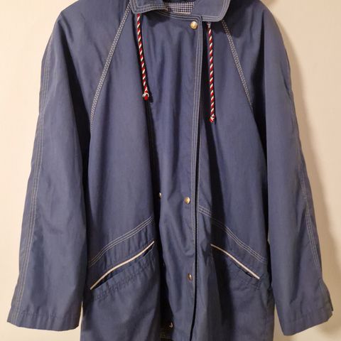 Ainoa pieni miinus on, että kangasmerkki on osittain irronnut, mutta se on helppo ommella takaisin paikalleen (näkyy kuvassa). Merkki on Mira-Tex ja takki on valmistettu Suomessa.
