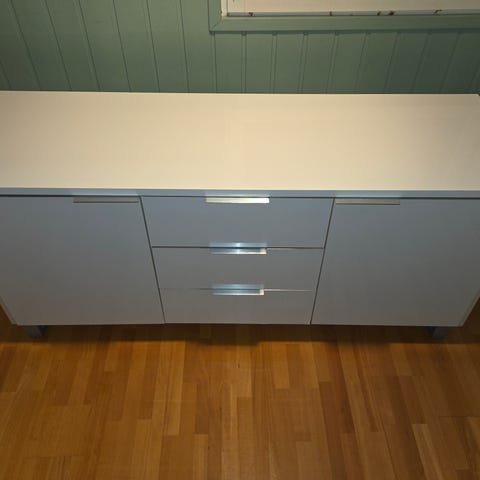 Korkea lipasto kuudella laatikolla. Siisti yleisilme.