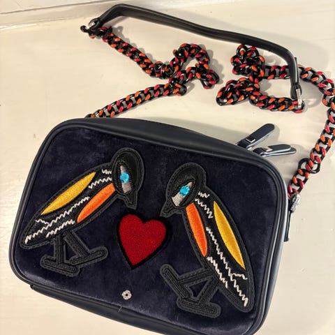 Laadukas tummansininen Samsonite bisneslaukku naisille valmistettu pehmeästä tekonahasta. Soveltuu erinomaisesti työlaukuksi monien taskujen ja lokeroiden ansiosta. Laukussa on koristeena lintukuvioita ja kukkakuvioita. Laukun mitat ovat noin 40 cm leveys, 29 cm korkeus ja pohjan syvyys noin 14 cm. Laukussa on punamustat ketjuremmiosat. OVH 300e. Käytetty vain muutaman kerran. Myynnissä myös saman malliston cross-body olkalaukku, yhteishinta neuvoteltavissa. Nouto Etu-Töölöstä tai toridiilipostitus.