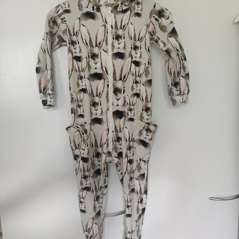 Metsola panda jumpsuit 98/104. Haalistunut kangas uudesta, panda kuviot eivät enää uuden kirkkaat ja niissä haalistumaa. Pesuhaitua. Vetoketjun vetimissä vähän kulumaa. Käytetty kunto.