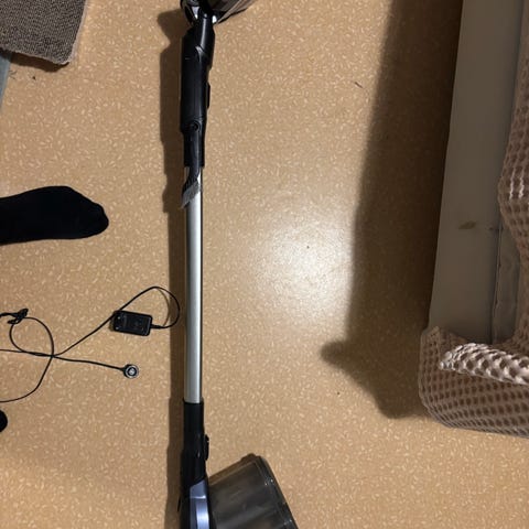 Myydään ikääntynyt mutta toimiva, ladattava rikkaimuri tarpeettomana. Latauspiste on samalla rikkaimurin säilytysteline.