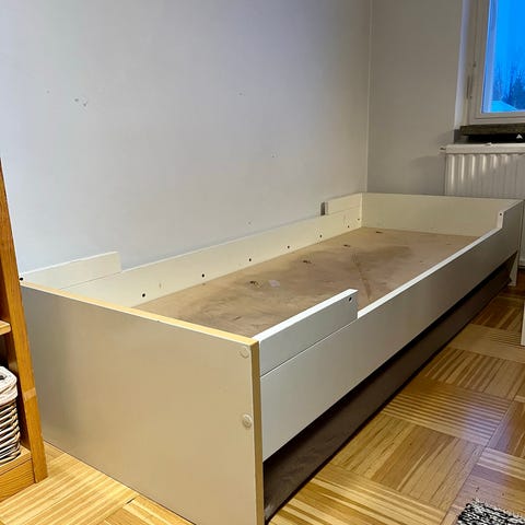 Klassikkosänky, jatkettava. Käytönjälkeä, maalipinta ei enää uudenveroinen, mutta tukeva ja kelpo sänky vielä seuraavalle. Mukaan saa kaupan päälle halutessaan n. vuoden vanhan Ikean vaahtomuovipatjan.