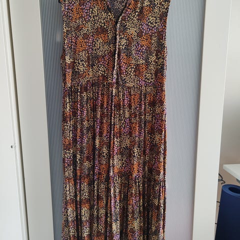 Mukava villakankainen liiviimekko koko noin M/L, harmaa väri ja valmistettu pikku ruudullisesta villakankaasta. Vuoritettu. Alaspäin levenevä liivimekko.
