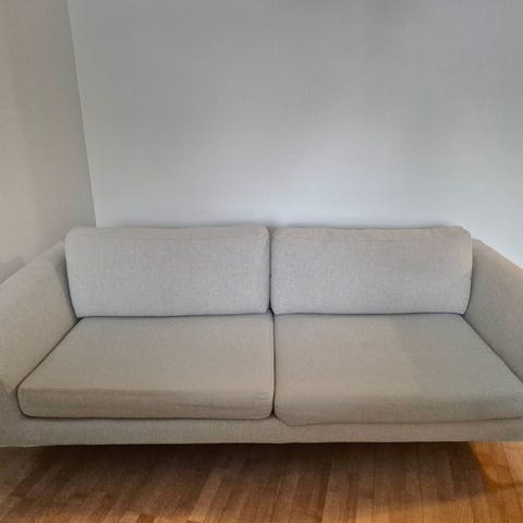 Korkeaselkäinen sohva on todennäköisesti Offecct Float High -sohva, jonka ovat suunnitelleet Claesson Koivisto Rune. Se voi olla myös samankaltainen malli, kuten Isku Inkoo Pro High -sohva tai Piiroinen Grand Canyon -sohva. 2 kpl