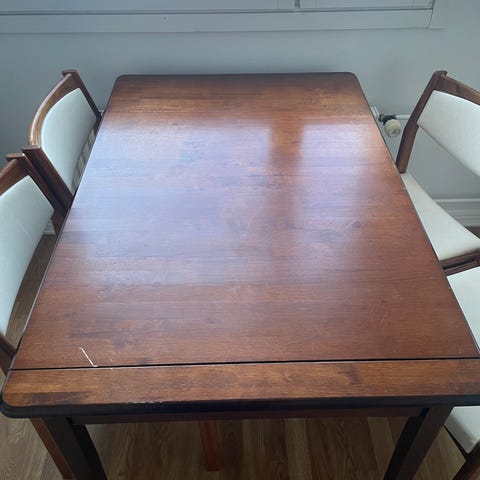 Myydään Ruokapöytä. Siisti kunto, vähän käytön jälkiä. Kuvan tuolit myös myynnissä. Vain nouto