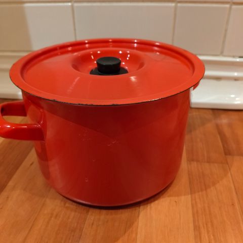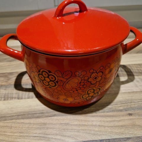 Hyvännäköinen retro emalikattila, 1,5 litraa. On käyttökelpoinen. Kannessa muutamia vikoja.