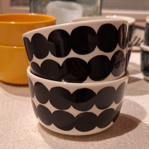 2kpl Marimekon keltaisia Oiva kulhoja 2,5dl.