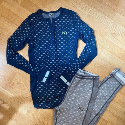 Kari Traa villaiset pitkät kerrastohousut, S. Uudet, vain kokeiltu ja todettu itselle pieniksi.