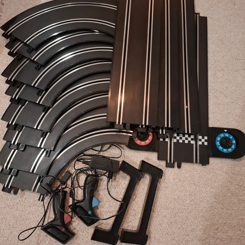 Autoista vain yksi tällä hetkellä ajokunnossa, muita emme ole osanneet korjata. Rata siis täysin ehjä ja käyttökunnossa, mutta meidän pojilla ei riitä mielenkiinto rassata näitä, eikä itsellä osaaminen.
