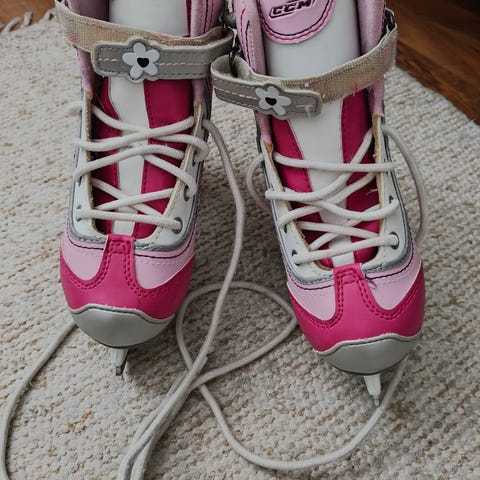 Myynnissä kaunareiden ja hokkareiden yhdistelmä. Koko n. 33, sisämitta 20 cm. Käytetty kunto, mutta toimii.