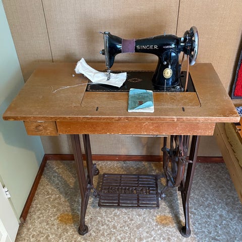 Myynnissä vanha, mutta toimiva ja hyväkuntoinen Singer ompelukone.