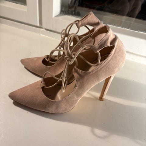 Korkokengät sinisessä värissä, koko 37. Korko noin 10 cm. Materiaali vaikuttaa mokkanahalta, luultavasti tekonahkaa. Ostettu Zalandolta. Postitus ToriDiilillä tai nouto Etu-Töölöstä.