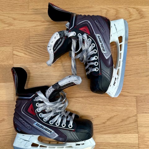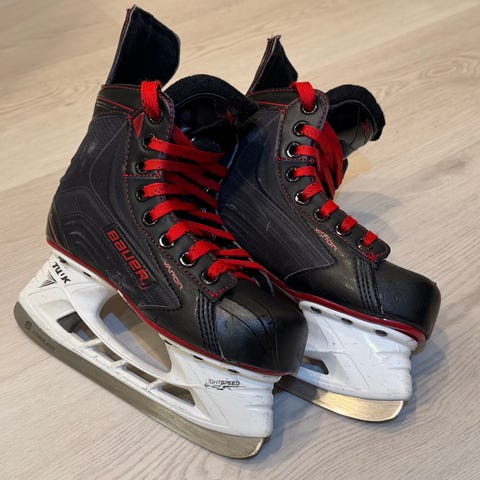Bauer Vapor jääkiekkoluistimet / hokkarit, koko 5 eli 38,5. Sisämitta noin 24,3 cm. Erittäin siisti käytetty kunto. Terät juuri teroitettu.