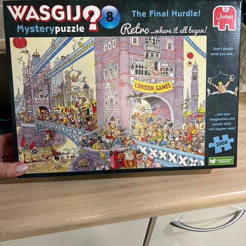 Wasgij Mystery 1000 palan palapeli. Kertaalleen kasattu ja kasaamisen jälkeen purettu sekä pussitettu.