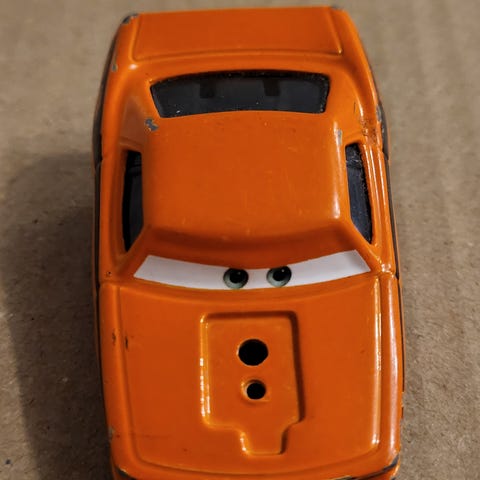 Leikitty metallinen Cars pikkuauto. Kuluma näkyy kuvissa.