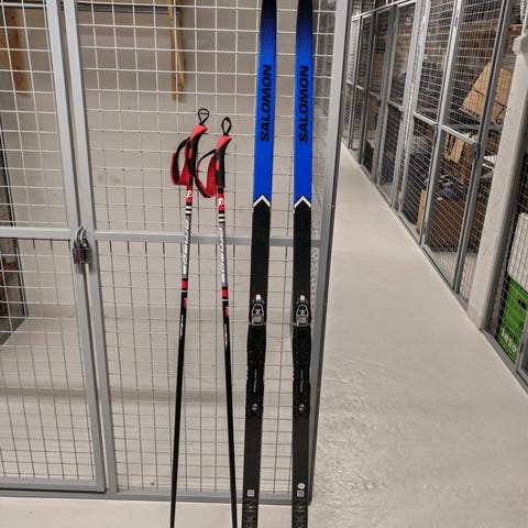 Hyvässä kunnossa oleva suksipaketti noin 170-185 cm hiihtäjälle. Optimi 65-80 kg, siirrettävällä siteellä, joten mennee myös laajemmalla painoalueella.