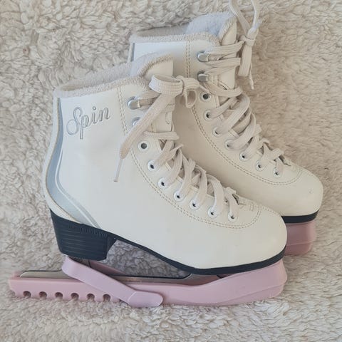 Spin lasten luistimet koko 32, valkoinen väri. Ollut käytössä pari talvea. Tosi hyväkuntoiset ja siistit.