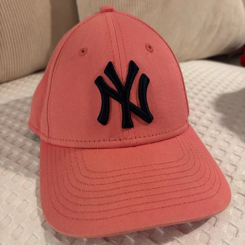 New York Yankees lippis nuorisokoko tummansininen vaaleanpunaisella tekstillä.