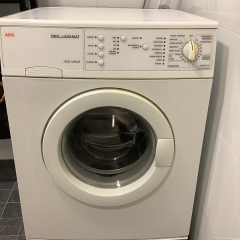 Myydään kuvassa oleva äitimme päältä täytettävä pesukone siinä kunnossa mitä on.