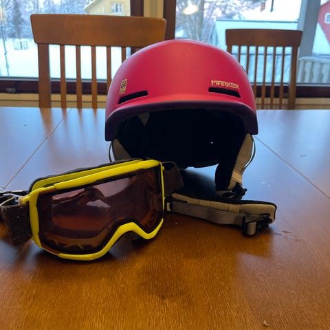 Laskettelukypärä ja lasit